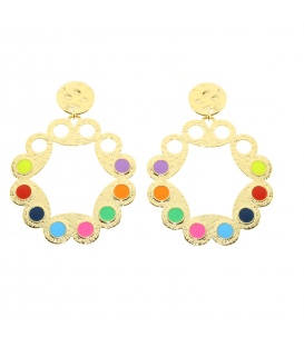 Vrolijk gekleurde oorhangers in de vorm van een kralen poppetje. De lengte van deze oorbel is circa 9.5 cm. Voor oren met gaatjes. De oorbellen zijn nikkelvrij. De oorbellen zijn voorzien van stoppertjes.