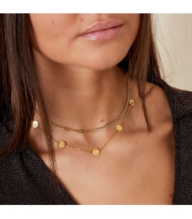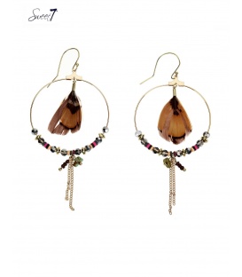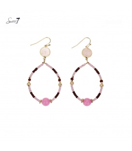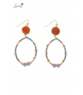 Goudkleurige oorringen met gekleurde dikke platte kralen. De lengte van deze oorbel is circa 4.20 cm. Voor oren met gaatjes. De oorbellen zijn nikkelvrij.