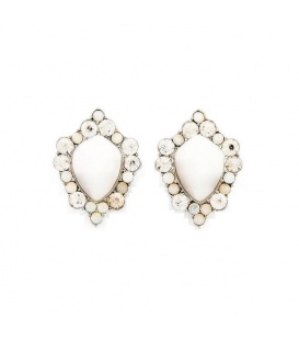 Vierkante oorclips met witte gemarmerde inleg in goudkleurige zetting. De lengte van deze oorclip is 2 cm. Deze klem oorbellen zijn geschikt voor oren zonder gaatjes.
