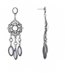 Zilverkleurige oorbellen in de hanger zitten heldere steentjes met een licht grijze kraal De lengte van deze oorbel is 7 cm. Voor oren met gaatjes. De oorbellen zijn nikkelvrij. De oorbellen zijn voorzien van stoppertjes.