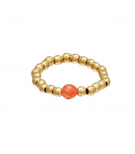 Teenring met goudkleurige kralen en ronde oranje steen. De teenring is in maat verstelbaar. Nikkelvrij.