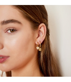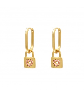 Goudkleurige oorbellen met hangslot en roze zirkoonsteentjes. De lengte van deze oorbel is 2.80 cm. Voor oren met gaatjes. Nikkelvrij.