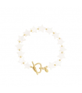 Goudkleurige armband met witte sterretjes en een hartjesslot. De armband heeft een lengte van 18.10 cm. Nikkelvrij.