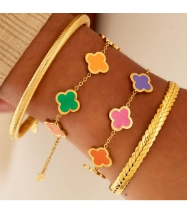 Gekleurde armband met goudkleurige schakels. De lengte van de armband is 19.5 cm. De armbanden zijn nikkelvrij.