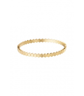 Stijlvolle goudkleurige bangle armband. De charme van deze elegante goudkleurige bangle armband. Deze armband is een verfijnde toevoeging aan elke sieradencollectie. Het ontwerp straalt tijdloze klasse uit en past perfect bij zowel casual als formele outfits. De subtiele glans van de goudkleur geeft een luxe uitstraling, ideaal voor de modebewuste vrouw.