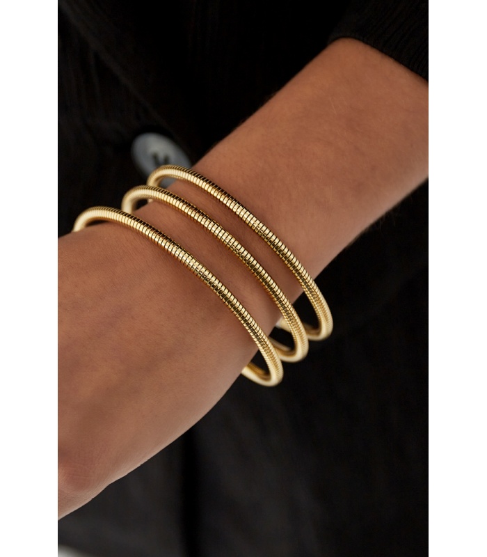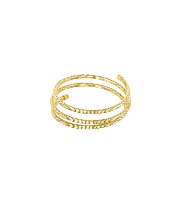 Deze stijlvolle goudkleurige armband is een tijdloos accessoire dat elke outfit een verfijnde uitstraling geeft. De warme gouden tint straalt luxe uit en is perfect te combineren met andere sieraden of als een op zichzelf staand statement piece. Ideaal voor zowel dagelijkse looks als feestelijke gelegenheden, deze armband voegt een vleugje glamour toe zonder te overheersen.