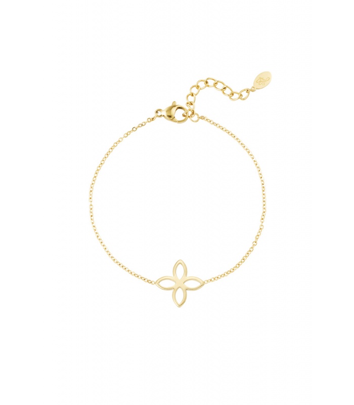 Onze prachtige goudkleurige armband, compleet met een charmante klaver vier bedel. Deze armband voegt een vleugje geluk toe aan elke outfit. Gemaakt van hoogwaardig materiaal, deze armband is perfect voor dagelijks gebruik of voor speciale gelegenheden.