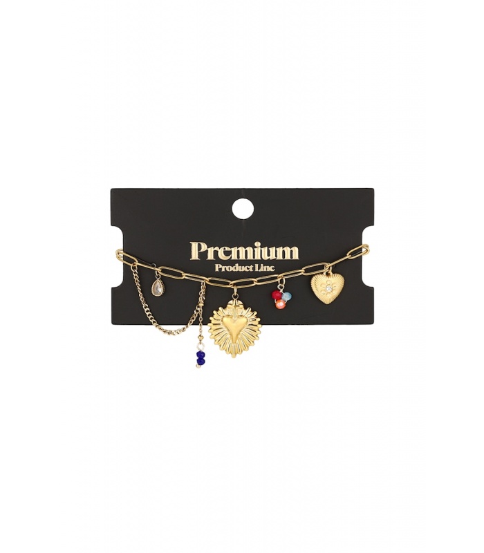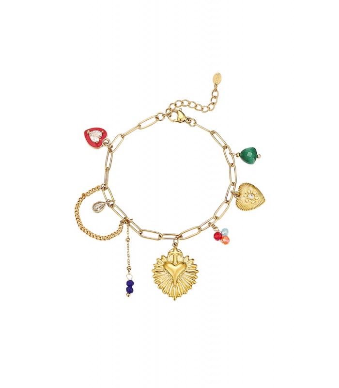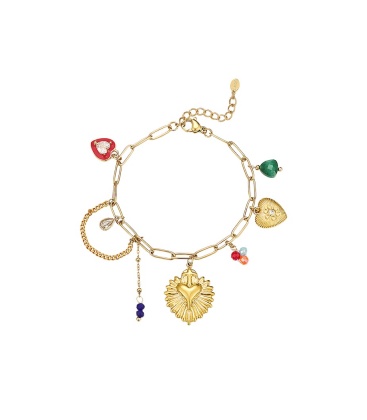 Deze goudkleurige armband met kleurrijke bedels is een perfecte aanvulling op je sieradencollectie. De combinatie van het elegante goud met de speelse, gekleurde bedels zorgt voor een unieke en modieuze uitstraling. Dankzij het duurzame materiaal en het tijdloze design is deze armband ideaal voor dagelijks gebruik en past hij bij diverse outfits. Voeg dit veelzijdige accessoire toe aan je collectie en geef je look een stijlvolle touch.