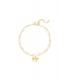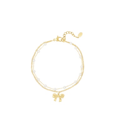 Goudkleurige dubbele armband met imitatie parel en een strik als bedel.