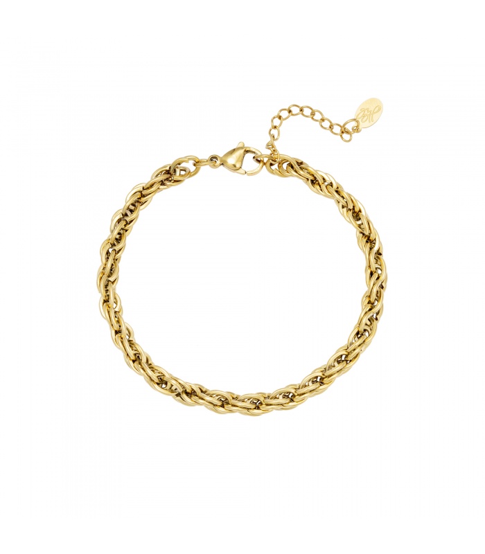 stoere goudkleurige gedraaide schakelarmband.