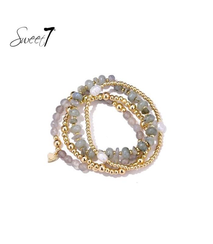 De zachte mix van grijze en lichte kralen straalt rust en stijl uit. Deze kralen armband voelt verfijnd en modern aan. De goudkleurige accenten geven de armband een warme glans die elke outfit subtiel laat stralen.