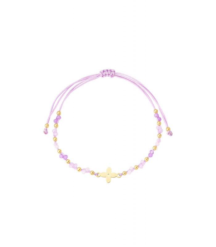 Voeg geluk toe aan je zomer met deze betoverende lila armband. Versierd met een sierlijke klavertje vier en subtiele kraken, is dit het perfecte accessoire voor elke modebewuste vrouw. De lichte paarse tint geven het een frisse uitstraling die ideaal is voor zonnige dagen.