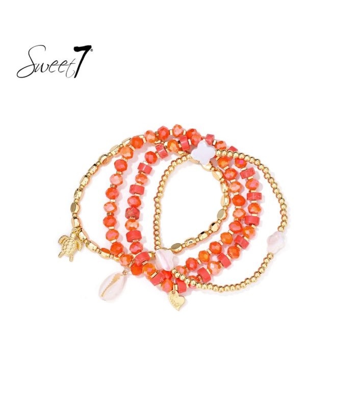 Deze armband geeft je outfit kleur en karakter. De combinatie van oranje kralen en goudkleurige details zorgt voor een trendy en zomerse uitstraling. Perfect als dames armband met een frisse look.
