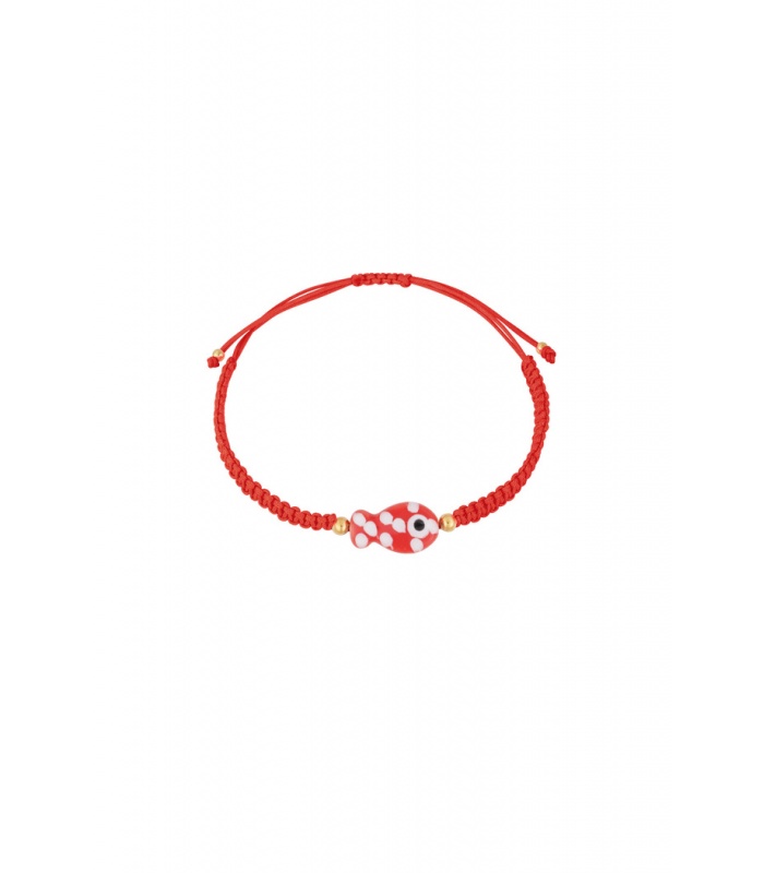 Deze armband is een stijlvol accessoire voor elke gelegenheid. Het rode koord is vakkundig geknoopt en voorzien van een verfijnde visbedel, wat een subtiele maritieme touch toevoegt aan je outfit. Het verstelbare ontwerp zorgt voor een comfortabele pasvorm voor elke polsmaat.