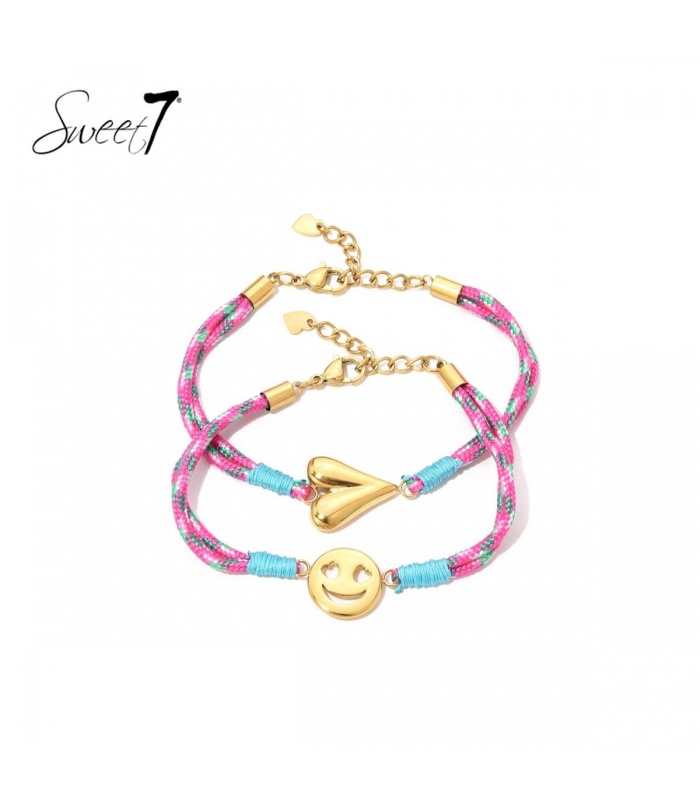 Armbanden met roze accenten, een goudkleurige smiley en hartje zijn dé trend voor een vrolijke en liefdevolle uitstraling. Deze armbanden combineren speelse elementen met een chique touch, perfect voor elke gelegenheid. Ze zijn lichtgewicht en comfortabel, ideaal voor dagelijks gebruik.