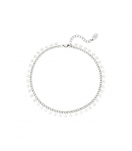 Zilverkleurige armband met sterretjes. De lengte van de armband is 16 cm en een verlengkettinkje van 3 cm De armbanden zijn nikkelvrij;