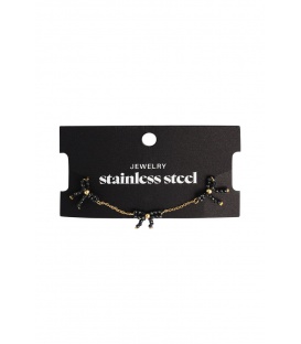 Zwart met goudkleurige armbanden met kralen en bedels. De lengte van de armband is circa 17.5 cm. De armband is nikkelvrij. De armband is voor zien van een verlengketting van 3 cm.