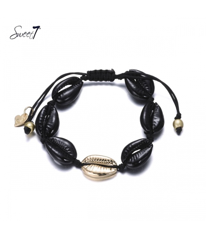 Zwarte schelpen armband met trek koord.