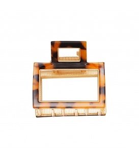 Vierkante haarclip bruine gespot. De lengte van deze haarclip is 5.50 cm.