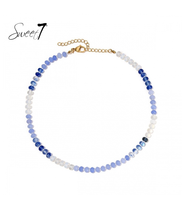 Deze halsketting is veelzijdig en kan zowel solo gedragen worden voor een minimalistische uitstraling als gecombineerd met langere kettingen voor een trendy laagjeslook. De blauwe kleur vormt een mooi contrast met neutrale tinten zoals wit en beige, maar kan ook prachtig samengaan met andere blauwe accessoires voor een monochrome stijl