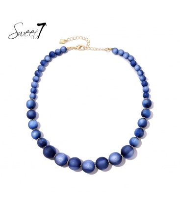Blauwe korte kralen halsketting in frisse tint verrijkt je outfit met een stijlvolle touch.Dit sieraad combineert glanzende kralen en subtiele fashion elementen.