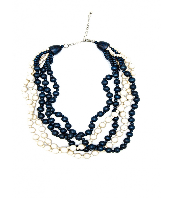 Blauwe met witte houten kralen...