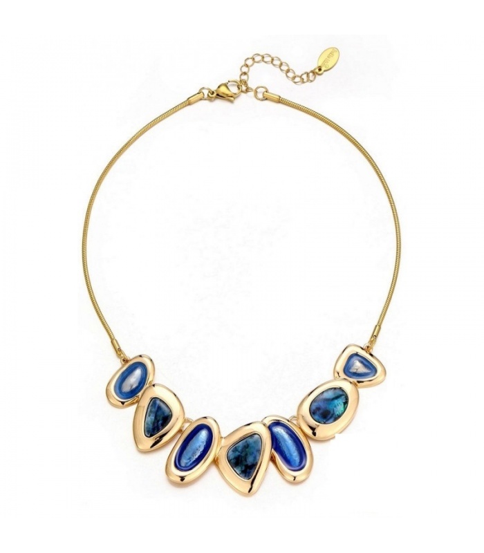 De combinatie van glanzende blauwtonen en speelse vormen geeft deze ketting een moderne uitstraling. Ideaal voor zowel zakelijke outfits als avondlooks. Een eyecatcher voor liefhebbers van fashion kettingen en opvallende sieraden.