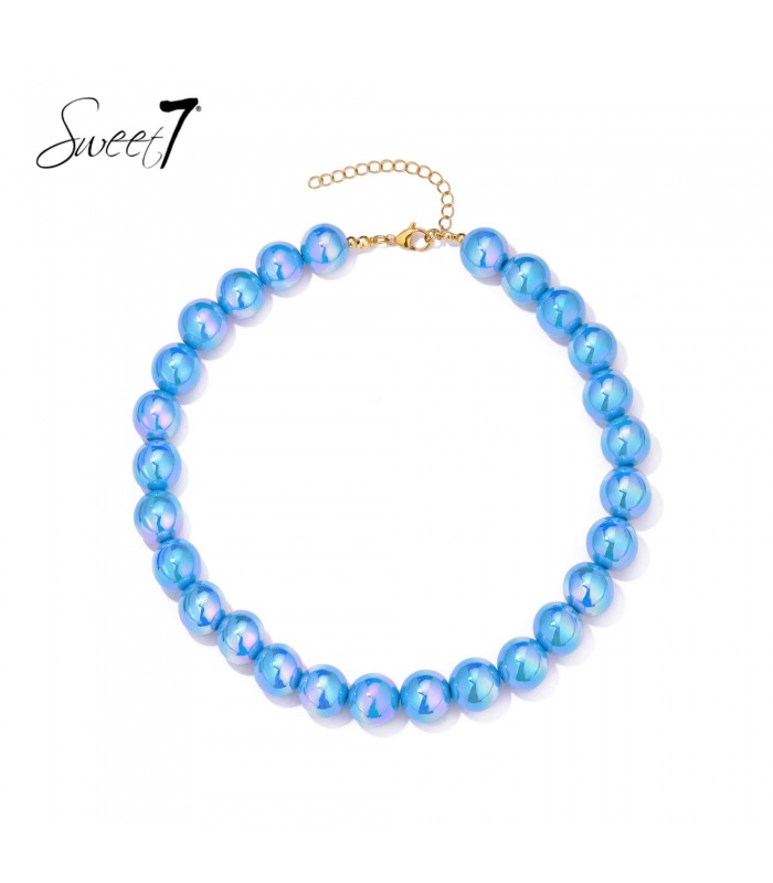 Zoek je een halsketting die direct opvalt? Deze halsketting met glanzende blauwe kralen geeft jouw look een frisse, trendy boost. De ronde kralen met metallic finish zorgen voor een echte statement ketting die perfect past bij een moderne dames ketting stijl.