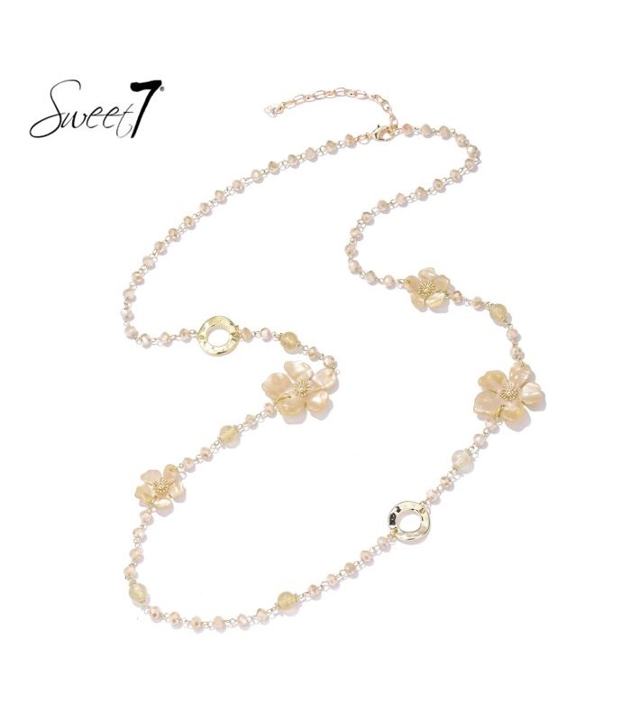 De zachte camel kleur en florale accenten zorgen voor een dromerige uitstraling die elke outfit verrijkt. Deze halsketting speelt met transparantie, glans en detail, waardoor het voelt alsof je een stukje lente om je hals draagt. Perfect voor wie houdt van verfijnde elegantie met een natuurlijke twist. De kralen en bloemelementen stralen rust en vrouwelijkheid uit, zonder overdadig te zijn.