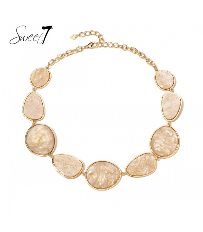 oor de opvallende stenen en gouden accenten is deze ketting een echte eyecatcher. Draag hem solo voor een minimalistische look of combineer met bijpassende sieraden voor een complete stijl. Voeg deze musthave toe aan je sieradencollectie en maak elke outfit compleet. Shop nu en straal!