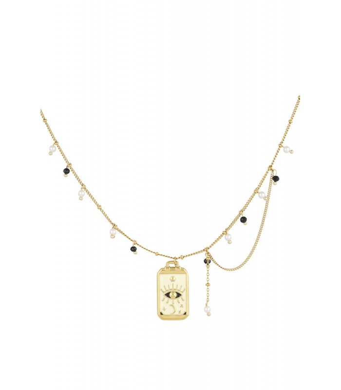 Deze halsketting combineert subtiele kralen met een opvallende oog bedel, wat zorgt voor een elegante en mysterieuze uitstraling. Het goudkleurige ontwerp voegt een vleugje luxe toe aan elke outfit. Wist je dat het oog-symbool vaak wordt gezien als een talisman voor bescherming? Deze ketting is dus niet alleen stijlvol, maar draagt ook een diepere betekenis met zich mee.