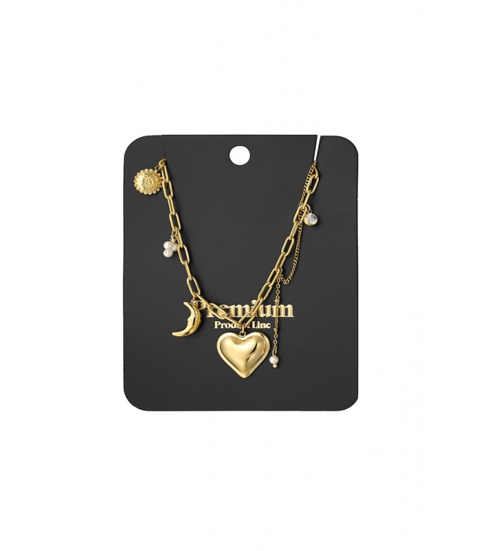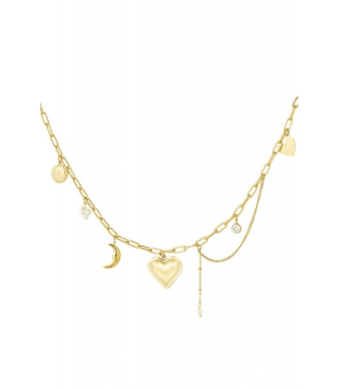 Deze ketting kan solo gedragen worden voor een subtiele look, of gecombineerd met andere kettingen voor een trendy laagjes-effect. De diverse bedels voegen een uniek accent toe aan elke outfit, waardoor het een veelzijdig accessoire is voor elke gelegenheid.