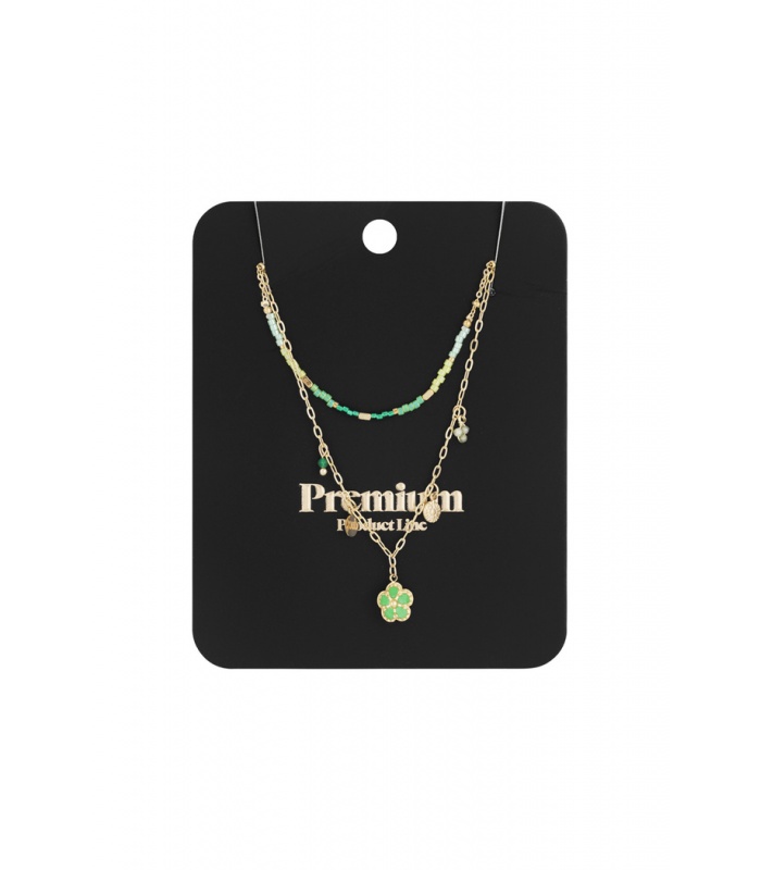 Waarom kiezen voor een halsketting met groene bedels? Groene accenten symboliseren balans en rust, en voegen een unieke touch toe aan je look. Deze ketting is perfect te combineren met aardetinten zoals beige en bruin, maar staat ook prachtig bij contrasterende kleuren voor een gedurfde fashion statement.