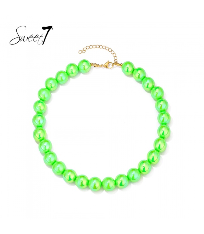 Zoek je een halsketting die direct opvalt? Deze halsketting met ronde neon groene kralen geeft elke outfit een frisse boost. De glanzende kralen creëren een trendy statement look. Perfect als dames ketting of kralen ketting voor een festival of zomerse dag.