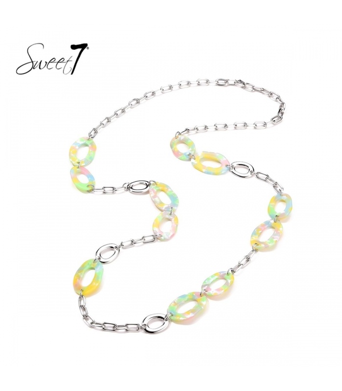 Een prachtige lange ketting, brengt kleur in elke outfit. Verrijkt met zilverkleurige accenten, combineert deze ketting moeiteloos stijl met elegantie. De levendige tinten zijn zorgvuldig geselecteerd om bij diverse gelegenheden te passen, van casual tot chique.