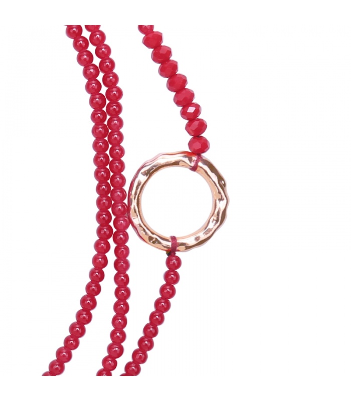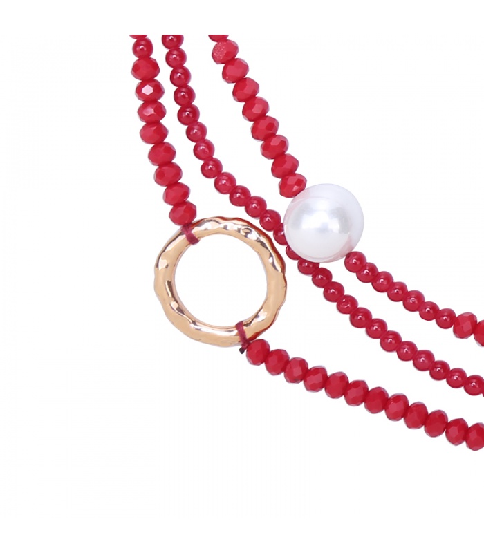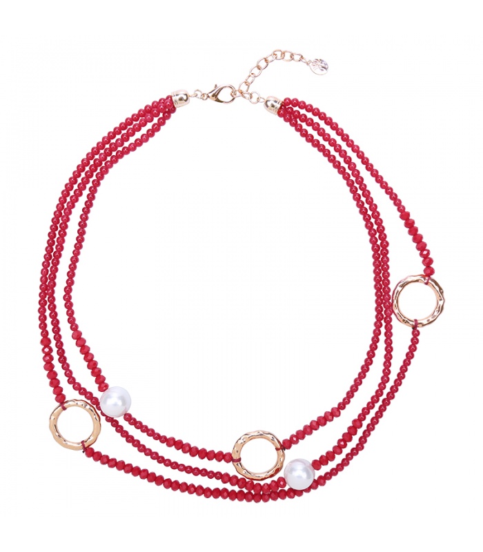 Rode kralen halsketting met parels en iriserende kralen en goudkleurige elementen