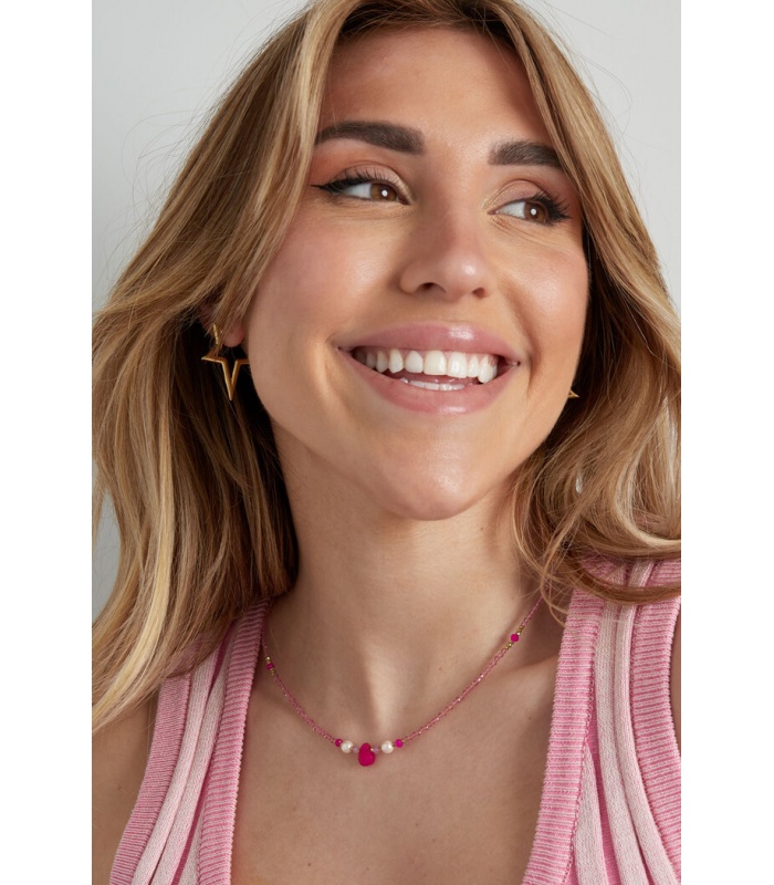 Upgrade je sieradencollectie vandaag nog met deze prachtige fuchsia roze halsketting. Klik op 'Toevoegen aan winkelwagen' en maak deze eye-catching ketting snel van jou!