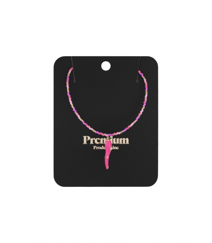 Fuchsia roze kralen halsketting met een peper hanger