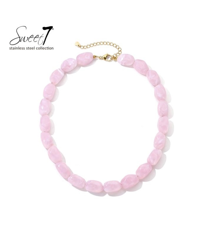 Zoek je een halsketting die direct opvalt? Deze kralen halsketting in zachtroze tint geeft jouw look een frisse, feminine touch. De glanzende kralen zorgen voor een trendy kralen ketting effect en maken dit sieraad perfect als statement ketting bij elke outfit.