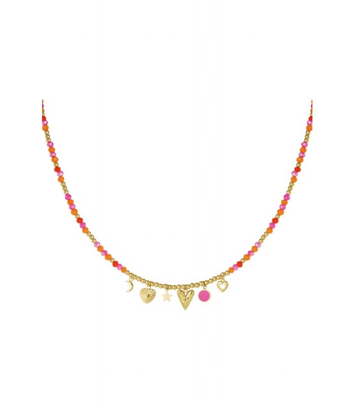 Oranje met roze halsketting met verschillende soorten hangers
