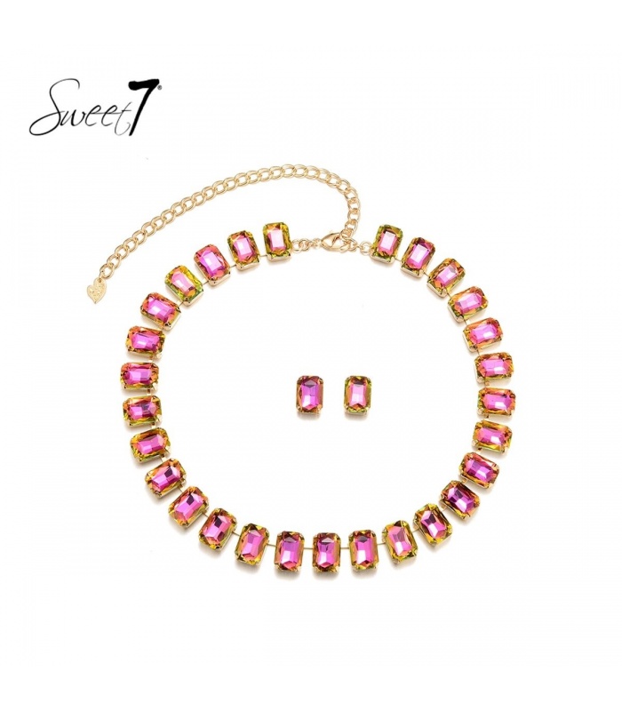 Roze glas kralen halsketting met bijpassende oorknopjes