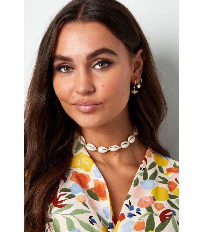 Deze halsketting is ontworpen met aandacht voor detail en zorgvuldig geselecteerde materialen. De goudkleurige ketting straalt warmte en elegantie uit, terwijl de kleine schelpen een speels en natuurlijk element toevoegen. Draag deze ketting om een alledaagse outfit te verlevendigen of om je beachy look compleet te maken.
