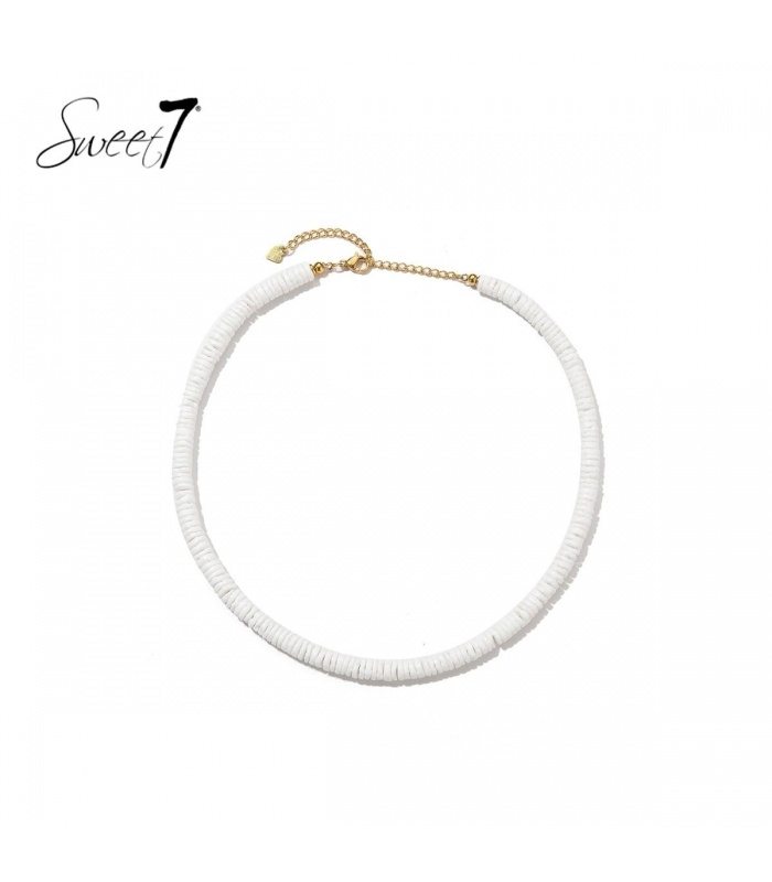 Onze adembenemende witte korte halsketting, met schelpkralen voor een natuurlijke uitstraling. Deze elegante ketting voegt een vleugje verfijning toe aan elke outfit, of je nu een dagje gaat winkelen of een avondje uit bent. De delicate schelpkralen zijn zorgvuldig geselecteerd en met vakmanschap geregen tot een tijdloos stuk dat je persoonlijke stijl accentueert.