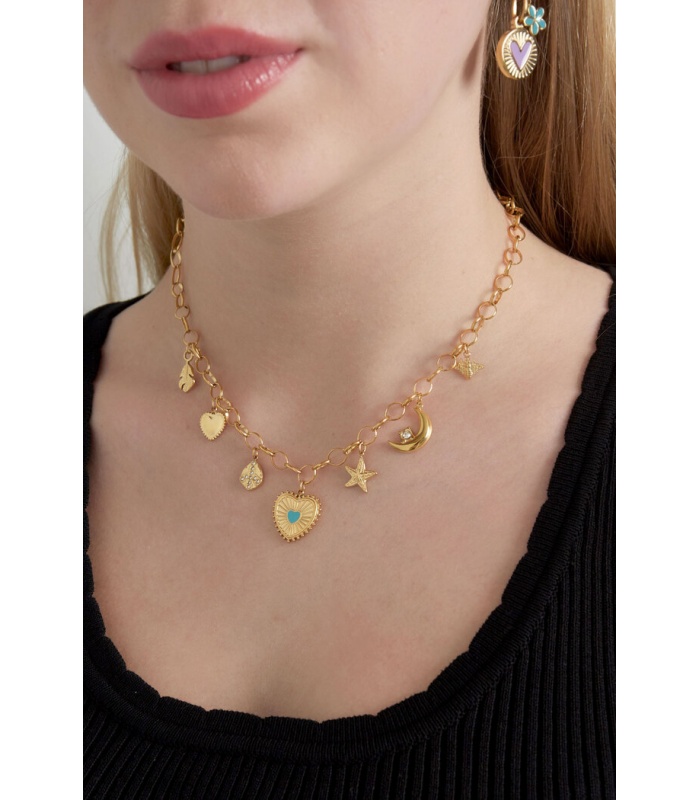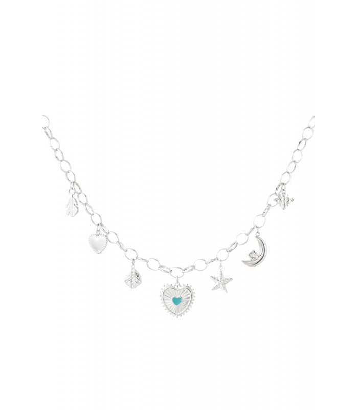 Met verschillende hangers, kun je eindeloos combineren en je eigen stijl creëren. Voeg een vleugje glamour toe aan je outfit of geef het als een speciaal cadeau aan een geliefde. Waar wacht je nog op? Maak je look compleet met onze zilverkleurige halsketting met diverse hangers!