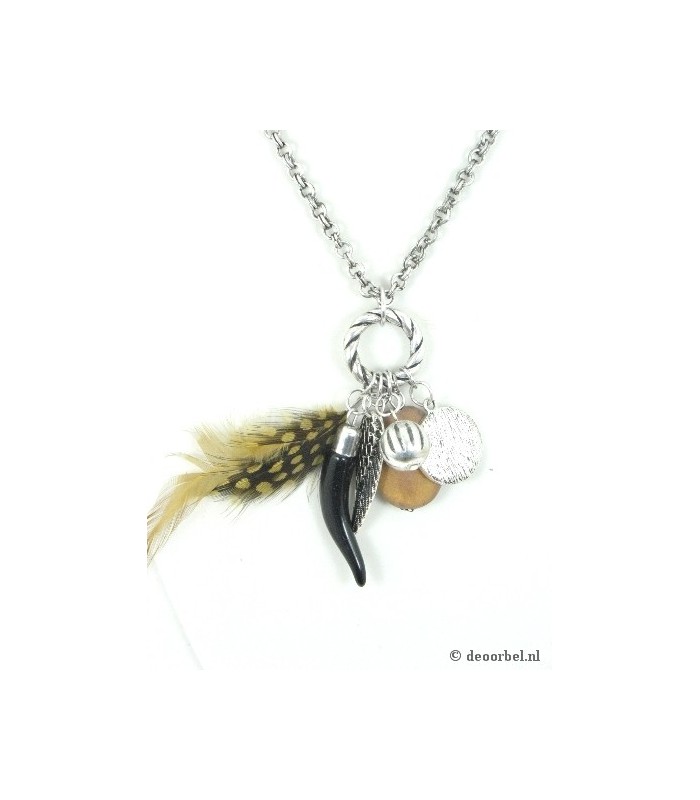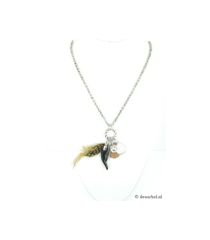 Zilverkleurige lange halsketting met...