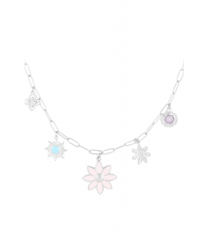 Deze zilverkleurige schakelketting is een stijlvol accessoire dat elke outfit compleet maakt. De grove schakels geven een stoere uitstraling, terwijl de diverse bedels een speelse touch toevoegen. Gemaakt van hoogwaardig roestvrij staal, is deze ketting duurzaam en behoudt hij zijn glans.