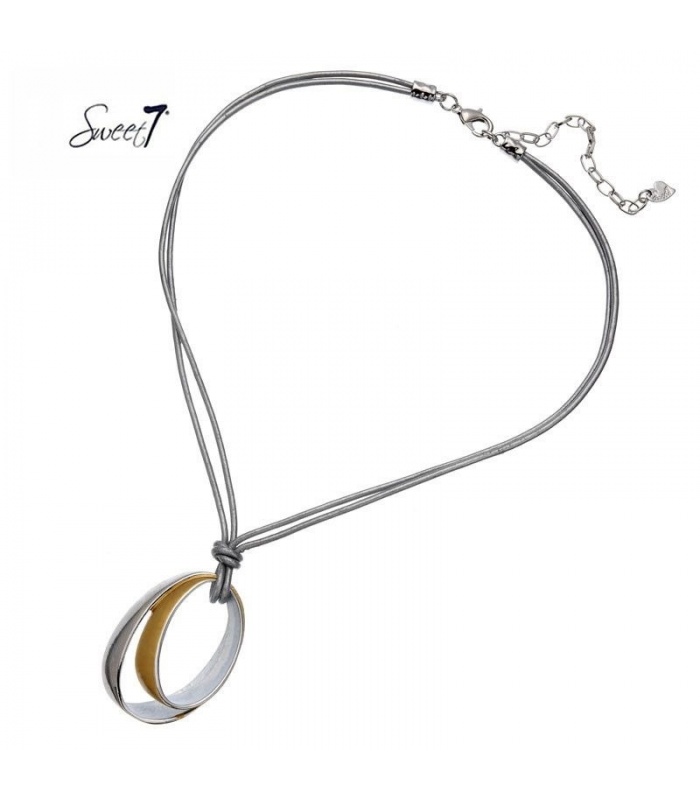 Zilverkleurige leren koord halsketting met een mooie ovale hangers