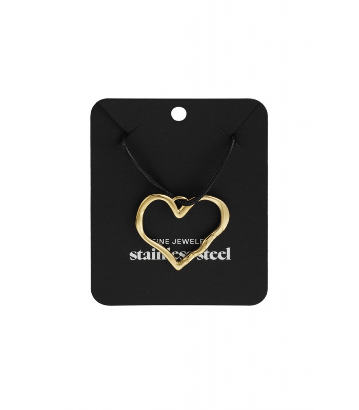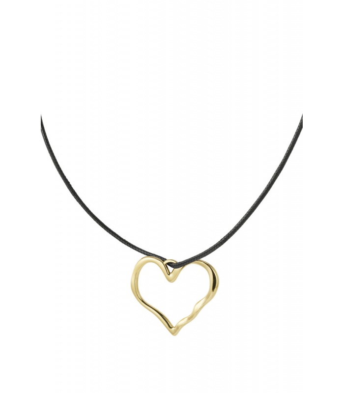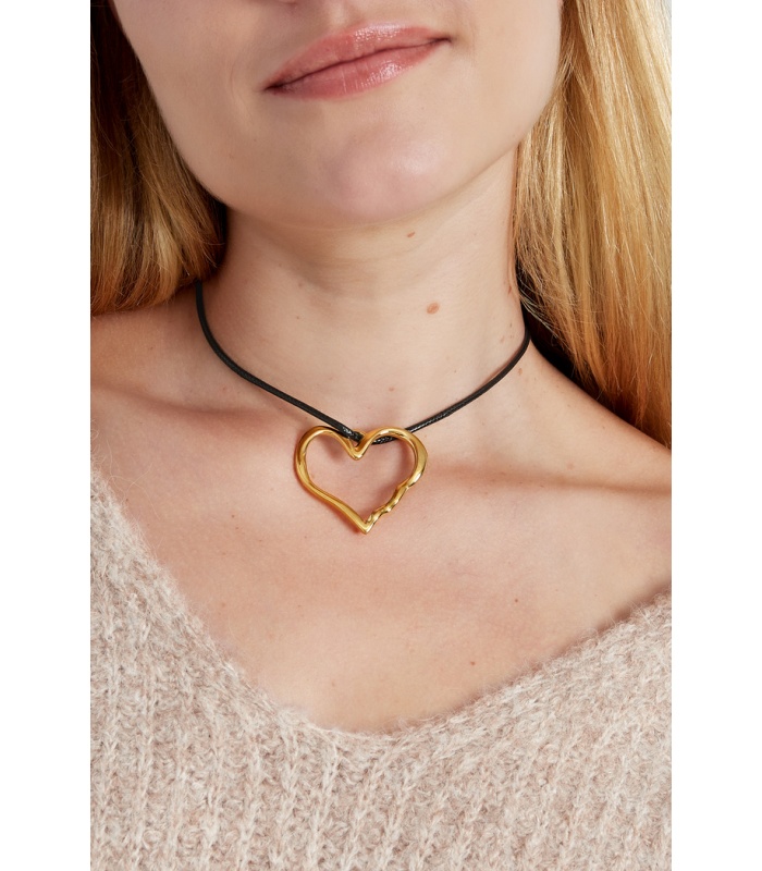 Trendy zwarte koordketting is een must-have accessoire voor elke fashionista. De ketting is voorzien van een opvallende goudkleurige hanger in de vorm van een hart, wat het een tijdloze en romantische uitstraling geeft. Het hart symboliseert liefde en verbondenheid.