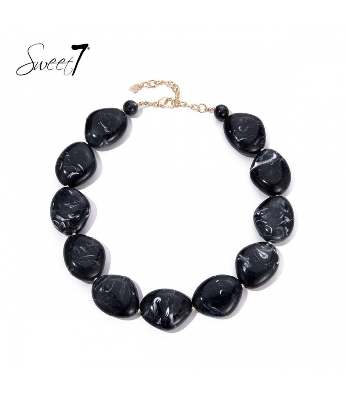 Zoek je een opvallend accent dat moeiteloos bij je outfit past? Deze halsketting met zwarte marmer look kralen straalt kracht en stijl uit. De vorm geeft een moderne, luxe uitstraling. Perfect te combineren met minimalistische fashion of als eye catcher op een avondlook.