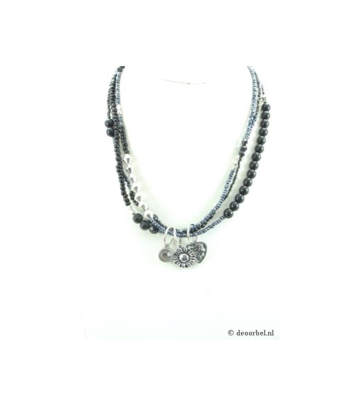 Zwarte kralen halsketting met...